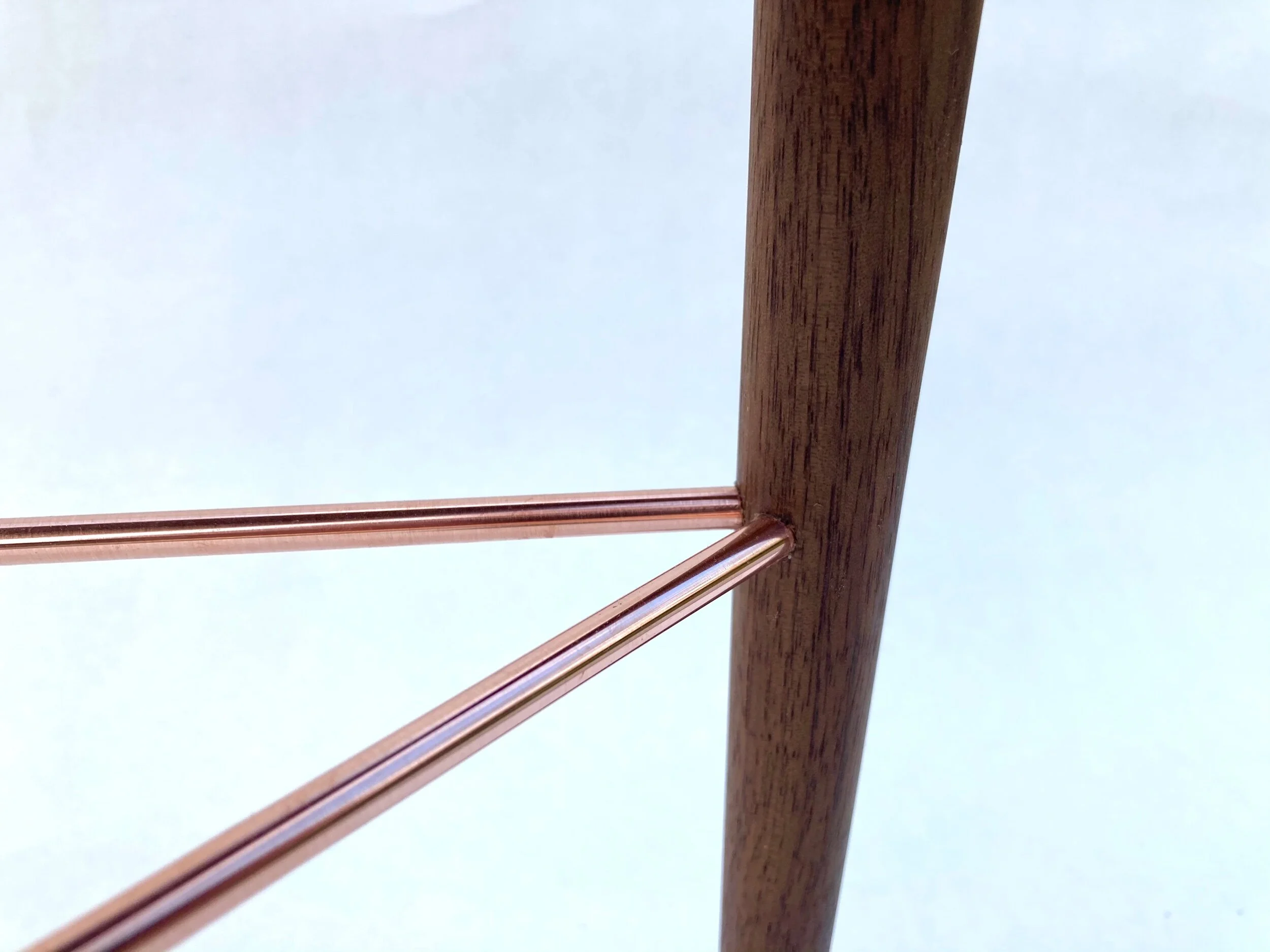 Sidobord i massiv valnöt med kopparstag.